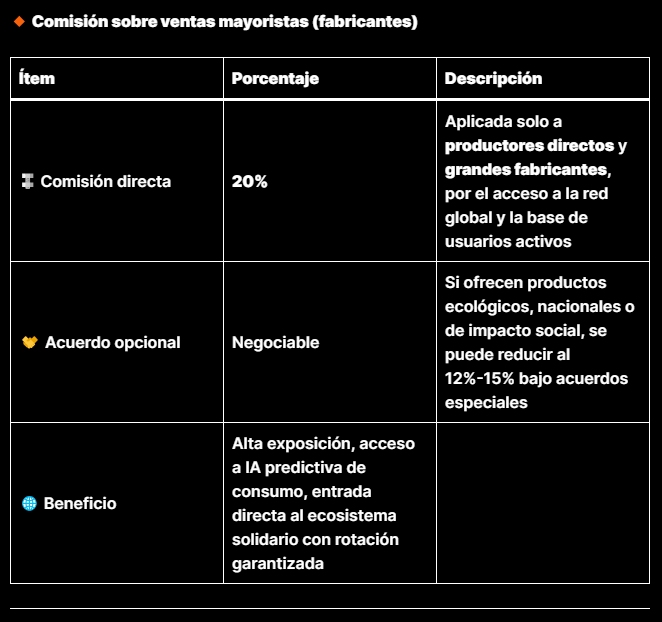 El sistema se financia a sí mismo (20%) sin exprimir al productor ni al cliente