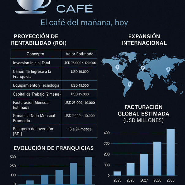 • Expansión a 50 franquicias: EE.UU., Europa y Latinoamérica.