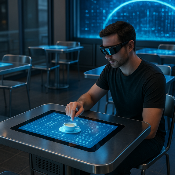 Todos los locales están equipados con Wi-Fi cuántico de alta velocidad, pantallas holográficas interactivas, y asistentes IA que personalizan el pedido según el historial del cliente o su estado anímico.