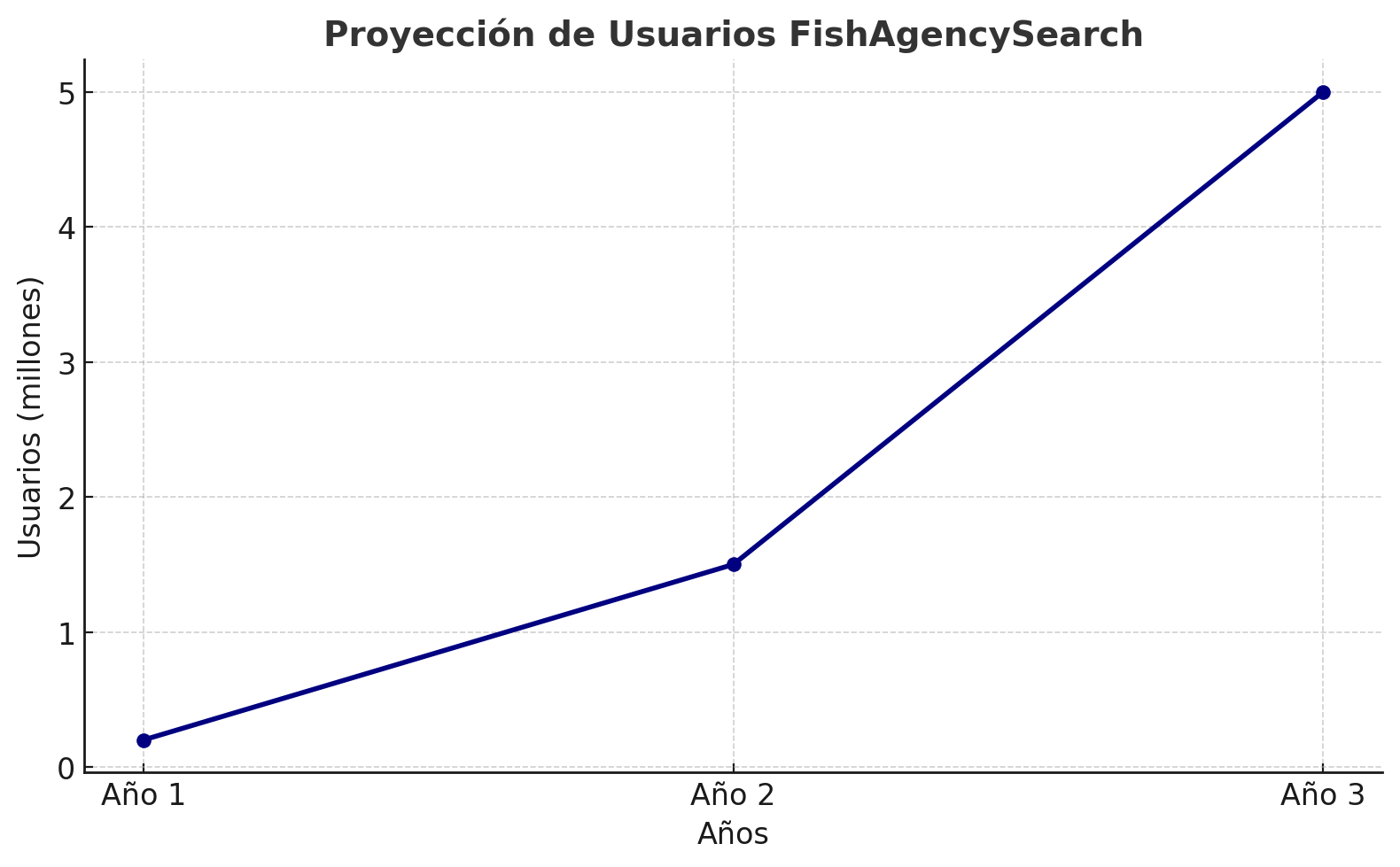 - Año 3 (Global): 5M usuarios únicos / mes.