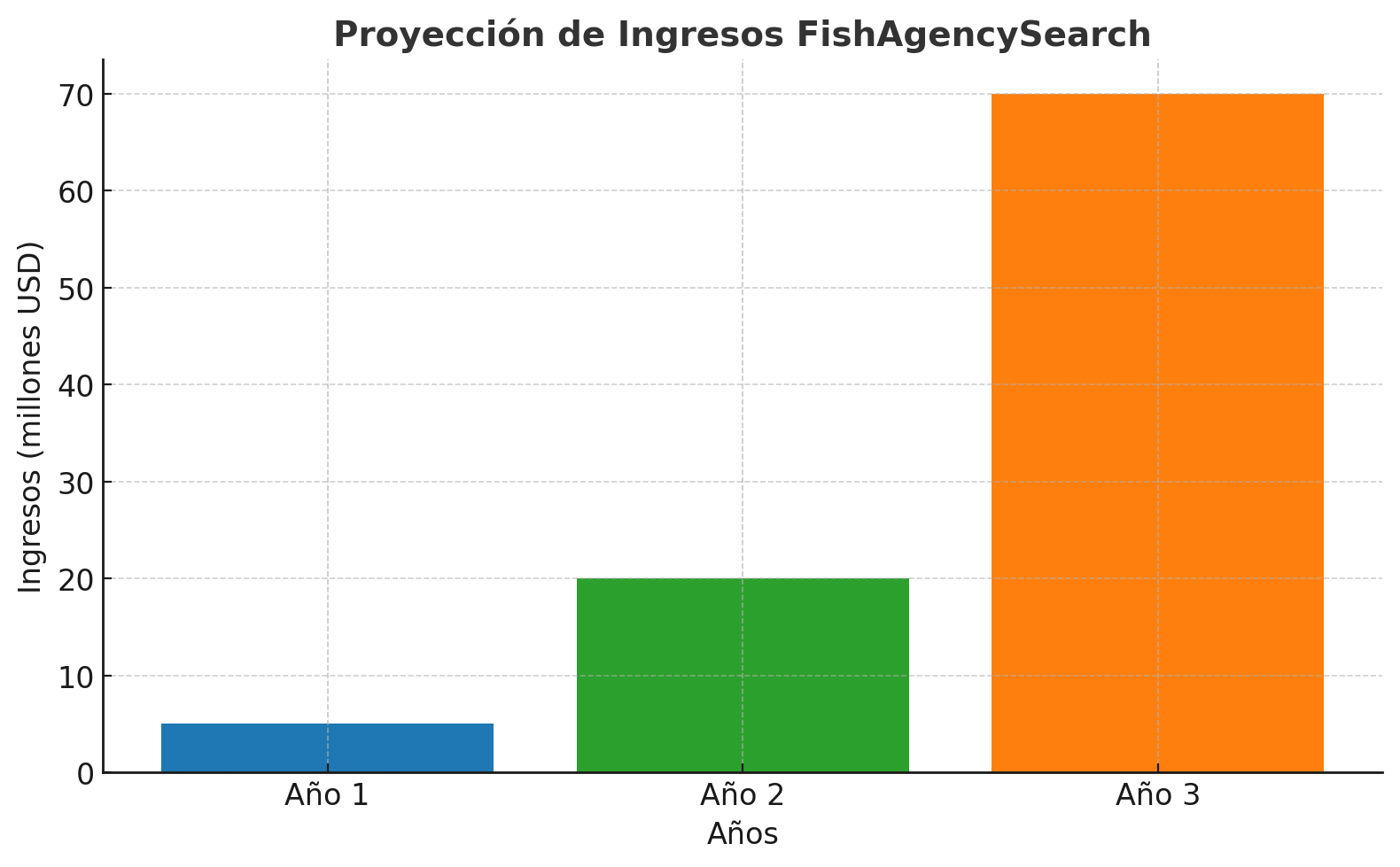 - Ingresos año 3: USD 50M – 70M (expansión + marketplace).