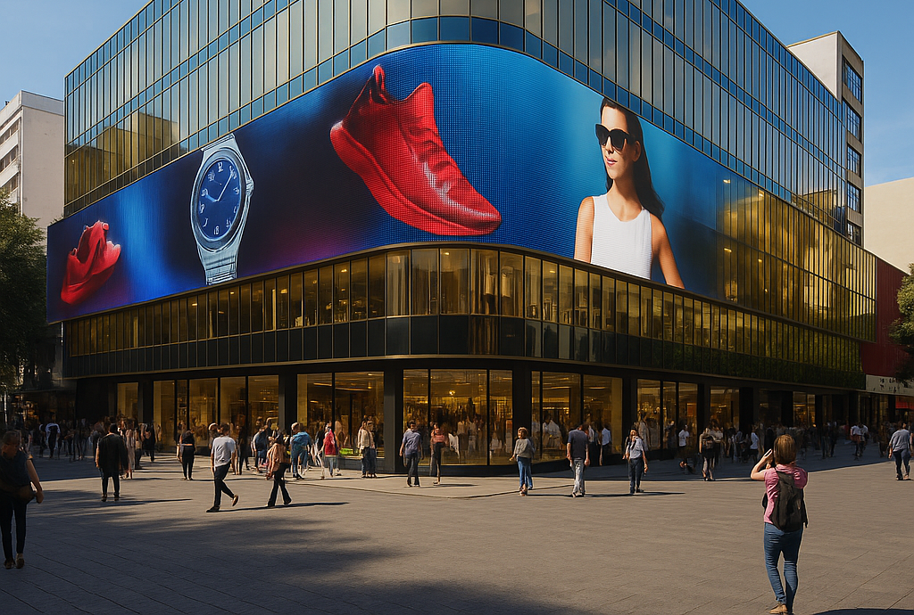 Distrito arquitectónico y tecnológico integrado con el nuevo Walmart de 4 plantas, mediante puente peatonal curvo sobre Av. Edison.