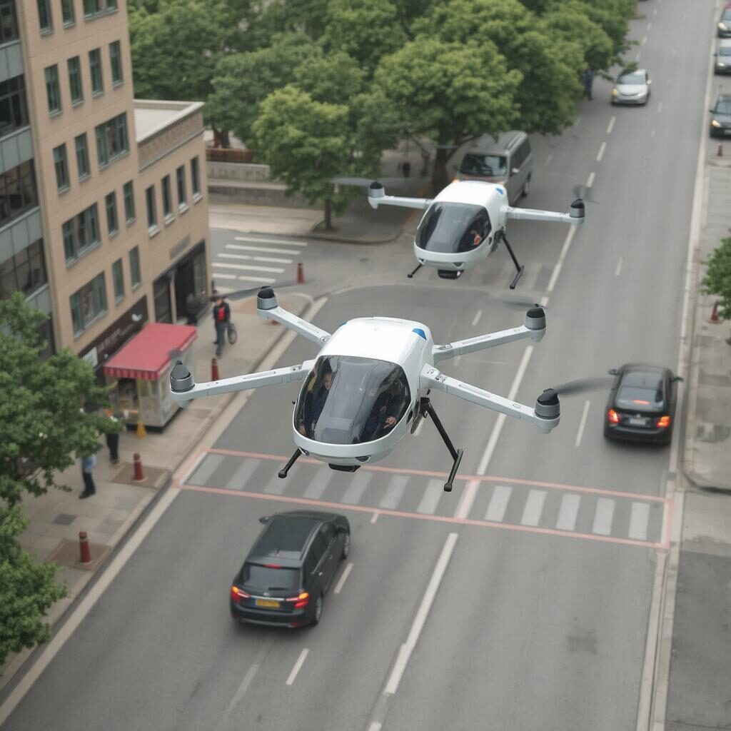 - 🚁 Movilidad: Drones autónomos de pasajeros y carga, sustituyendo autos y transporte terrestre de corta distancia.