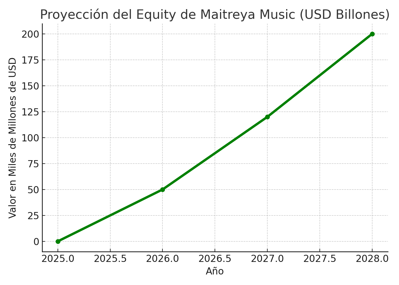 Elevar el equity de Maitreya Music a USD 200.000 millones en tres años.