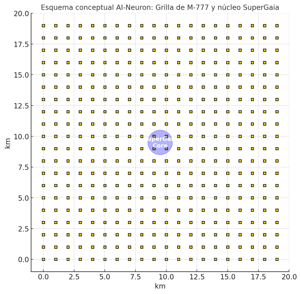 Constituida por el núcleo central SuperGaia y el sistema de megaestructuras Magic-777, AINEuron será el nodo físico y digital de la nueva economía postindustrial basada en IA avanzada, infoquanta y robótica de precisión.