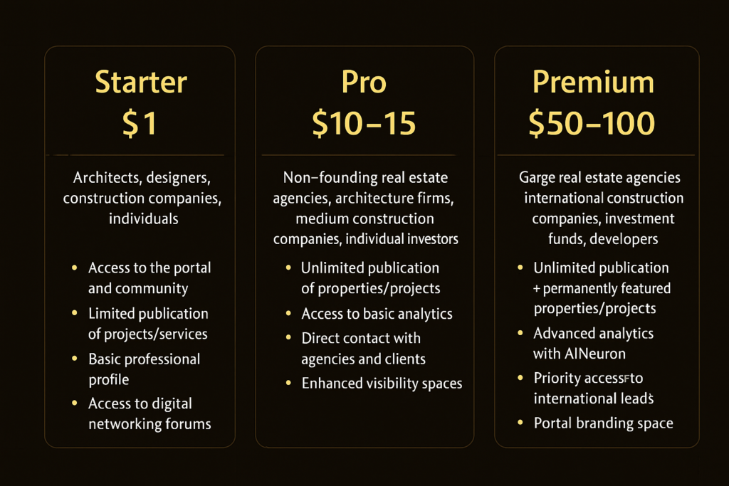 “Con apenas USD 100 asegurás tu lugar como socio fundador de un portal inmobiliario global. No es un gasto en un aviso: es ser parte de un negocio que puede escalar a millones de dólares y que está diseñado para crecer en todos los continentes.”