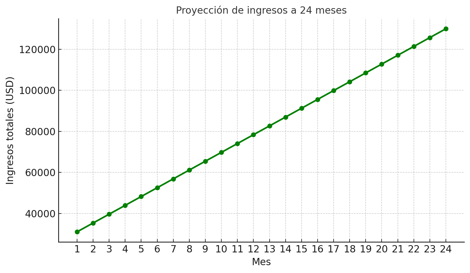 Para activar el software y el hosting inicial, se requiere un capital semilla de USD 10.000, distribuido de la siguiente forma: