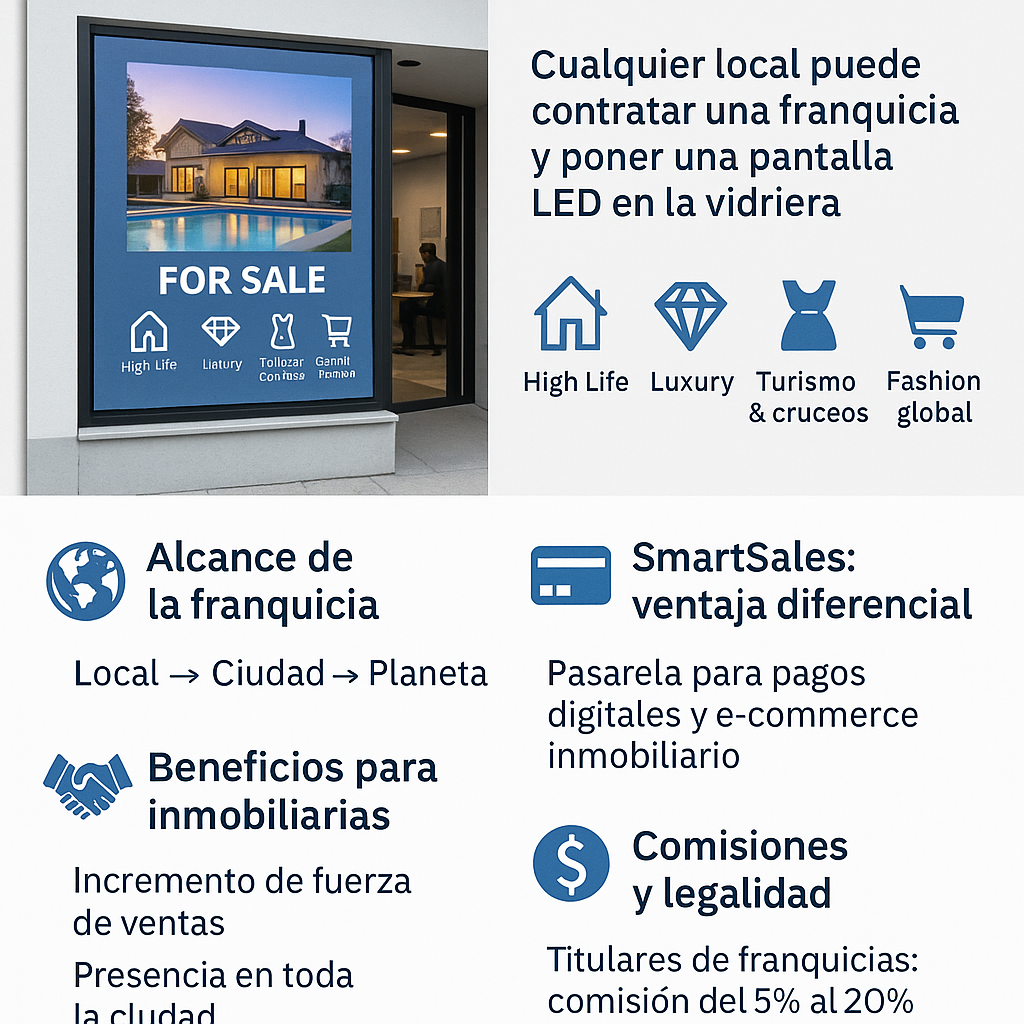 “Convierta su local en una ventana al mundo del lujo, la moda y el turismo, y gane comisiones de hasta el 20% por operaciones inmobiliarias.
